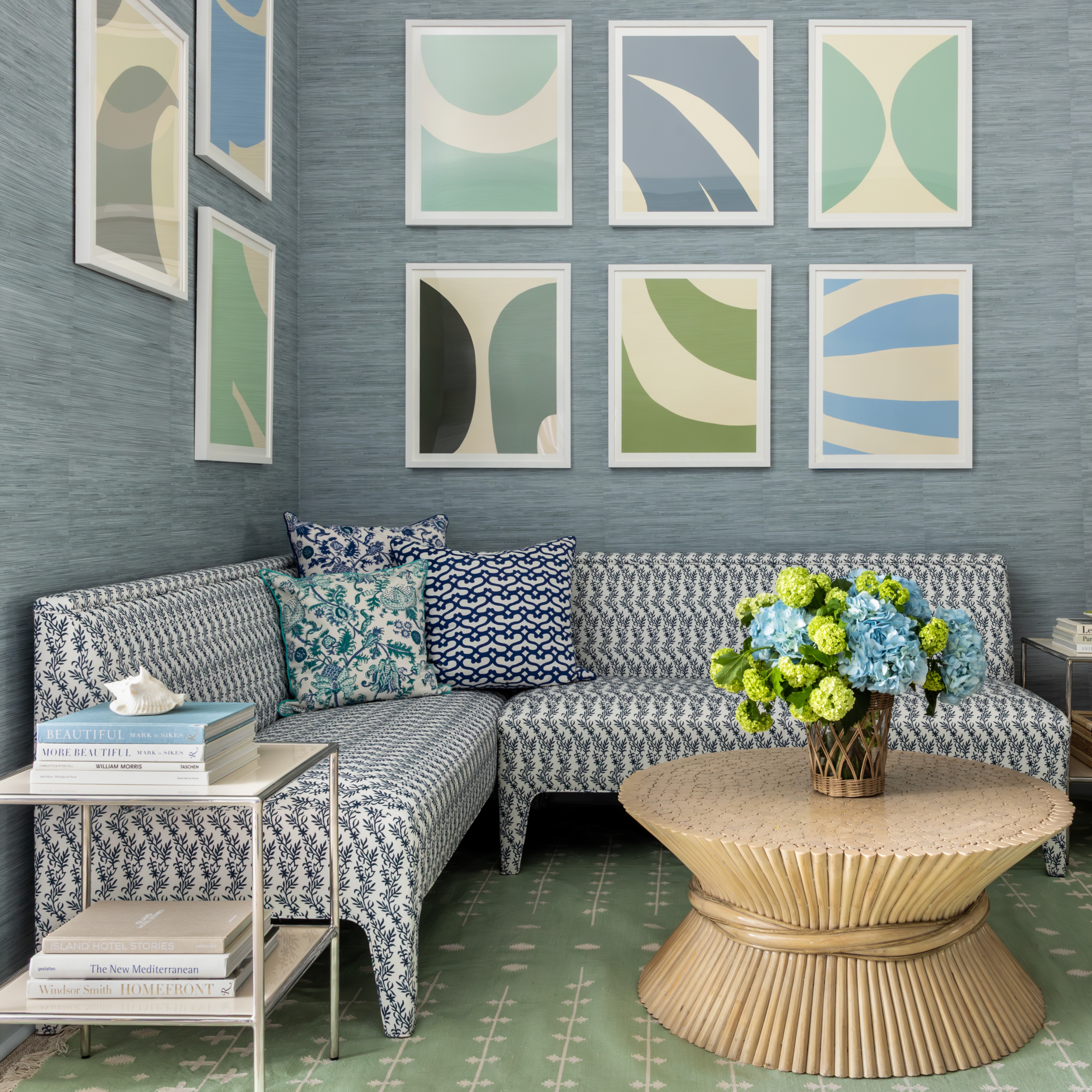 Ariel chose our Baxter Corner Banquette to anchor this cozy seating nook, creating a chic and comfortable resting spot for tired shoppers. Our custom banquettes are custom-by-the-inch and available in several elegant silhouettes, so you can create the perfect piece for every space!
