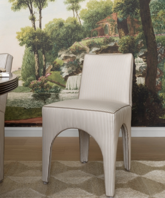 Structurally chic, yet still comfortable, the Mia Dining Chair features stylish curved legs. This fully upholstered dining chair is fabulous in a print, or streamlined and sleek in a solid.