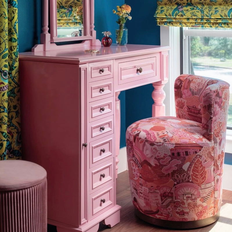 The Upholstered Teeny Swivel is a CH Team favorite! It is incredibly stylish as a desk or vanity chair, and is perfect for maximizing seating in small spaces. The swivel base combined with the opportunities for customization make it both beautiful and functional.