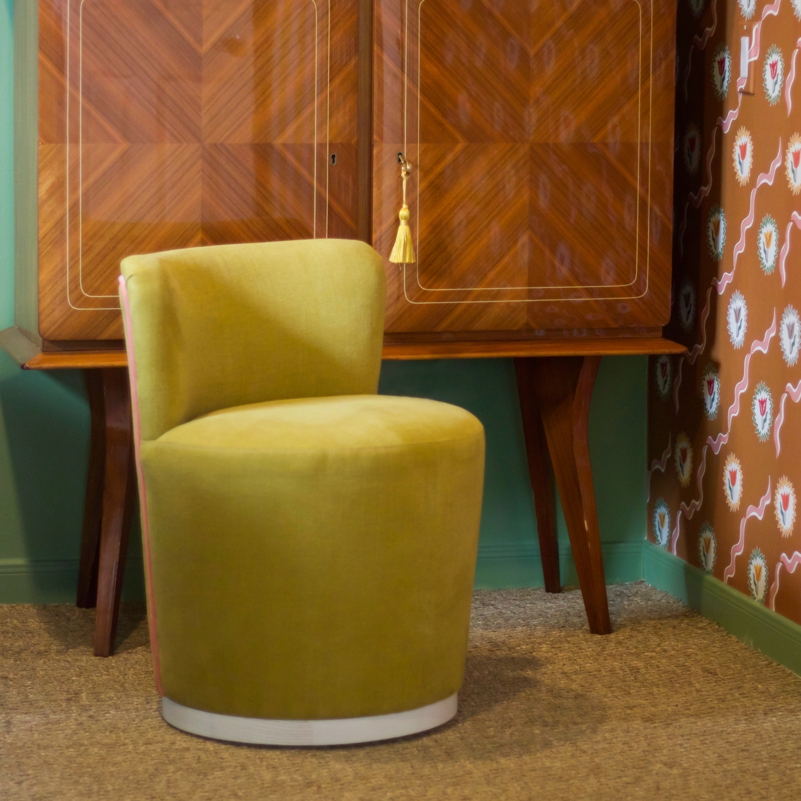 The Upholstered Teeny Swivel is a CH Team favorite! It is incredibly stylish as a desk or vanity chair, and is perfect for maximizing seating in small spaces. The swivel base combined with the opportunities for customization make it both beautiful and functional.