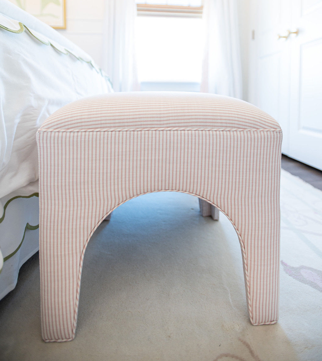 I wanted these to be in the forefront of the space because I knew that they would be the perfect element for the end of her bed. Between the curved legs and the beautiful welt, they were most definitely the piece that brought the space together.
