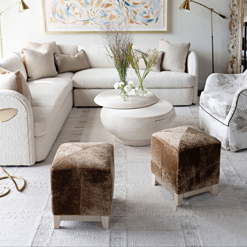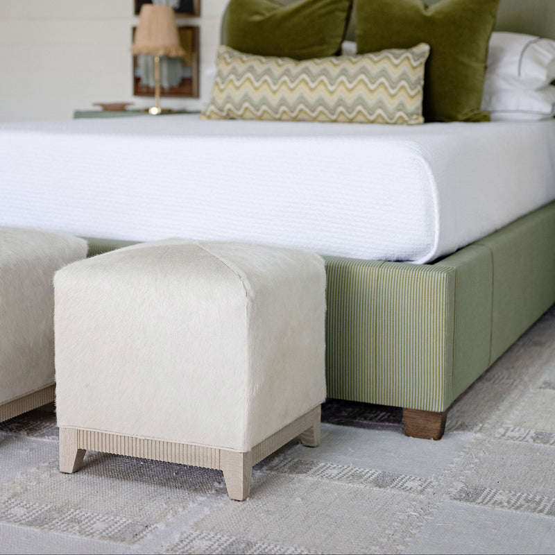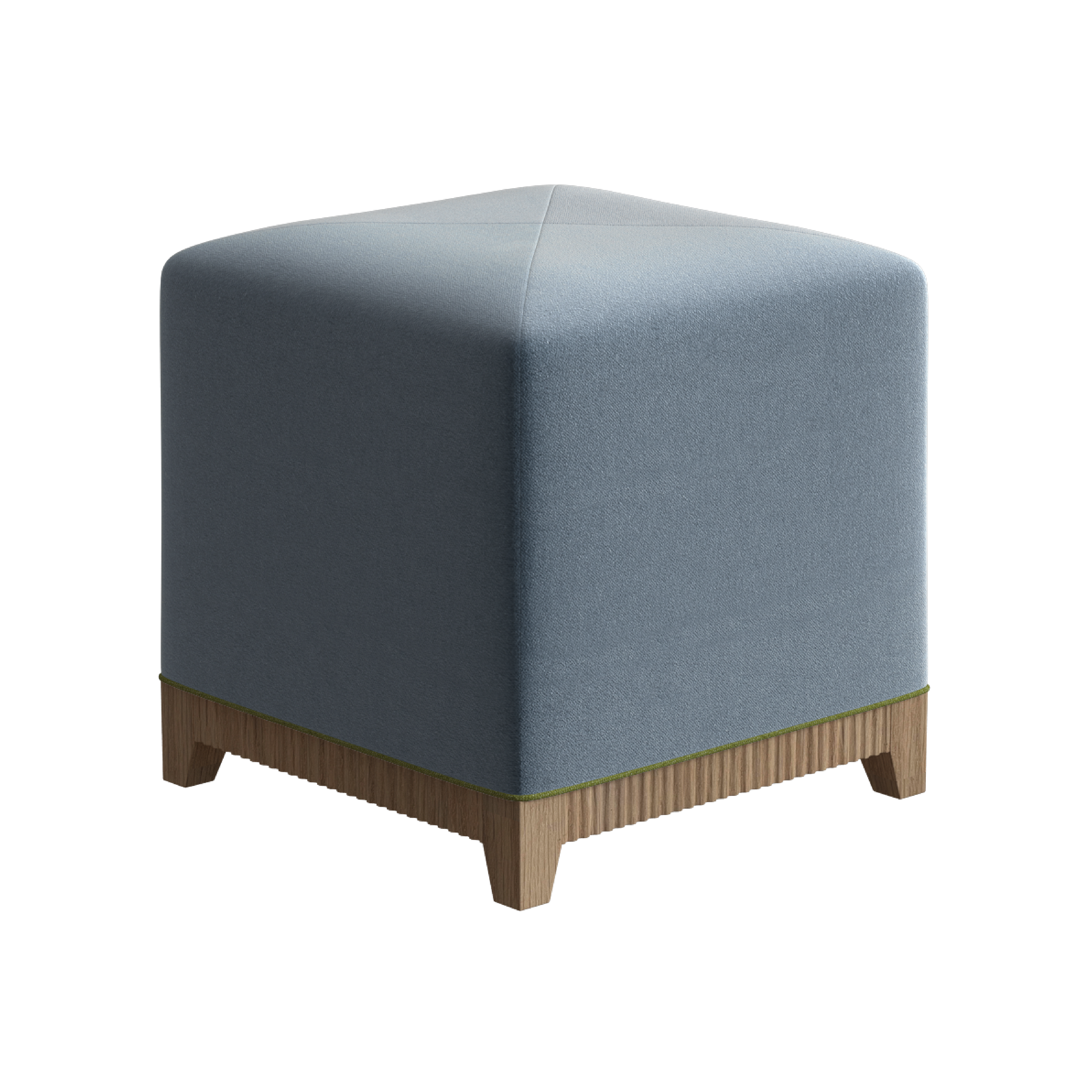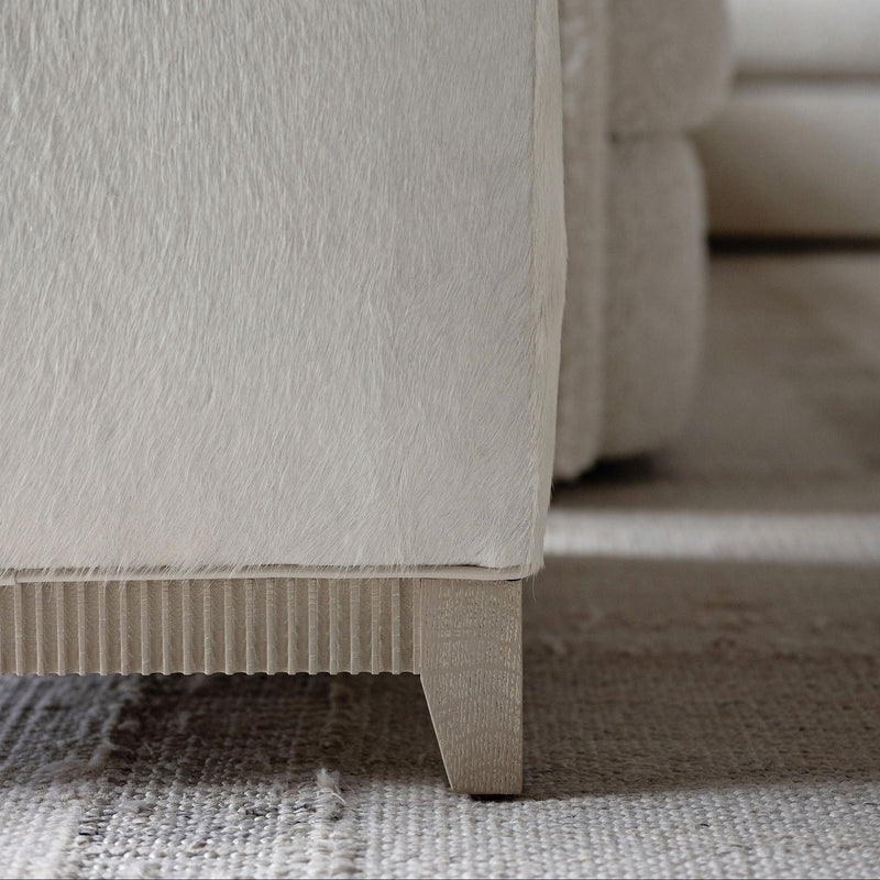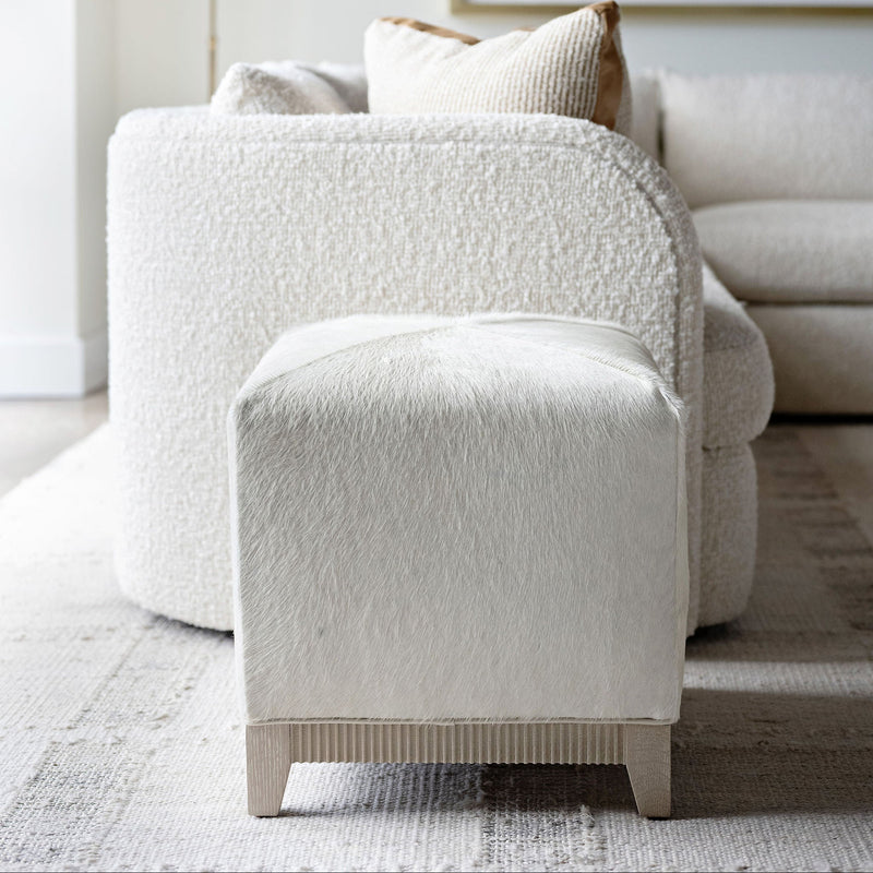 The perfect blend of modern minimalism and intricate details, our Blane Ottoman is a stunning accent piece. The Blane Ottoman is available in two sizes and complete with a fluted wood base.