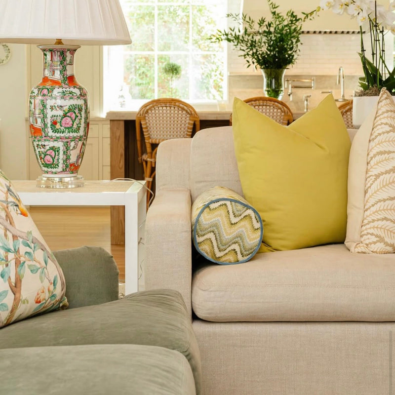 The Bolster Pillow adds a beautiful finishing touch to your bed or sofa. Design your dream pillow with 80+ fabric and piping options to choose from. Available in 24″ and 35″. Fiber wrapped foam insert included.