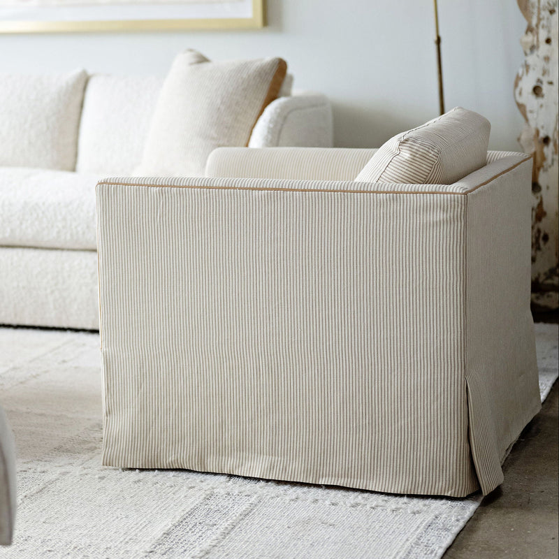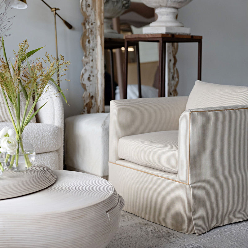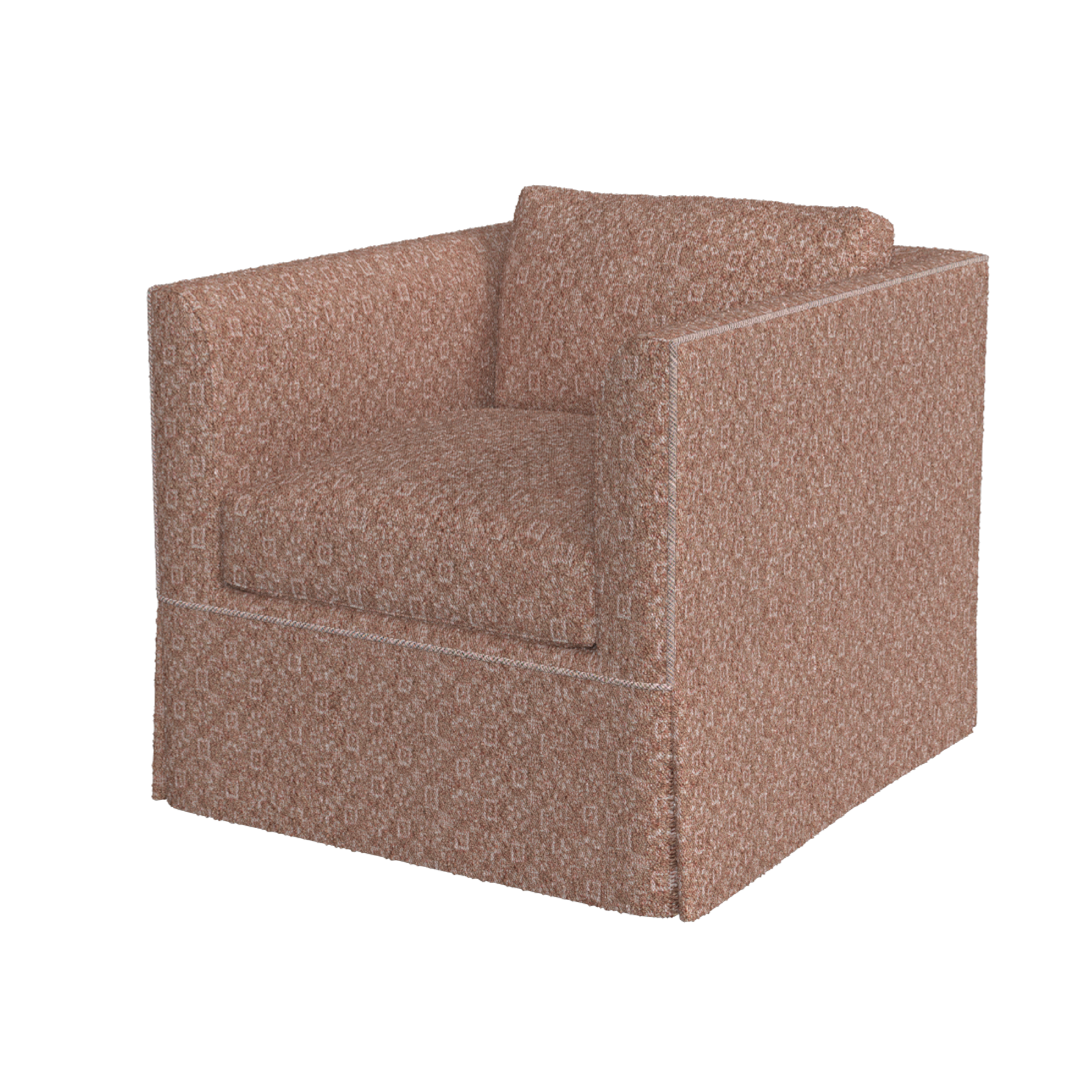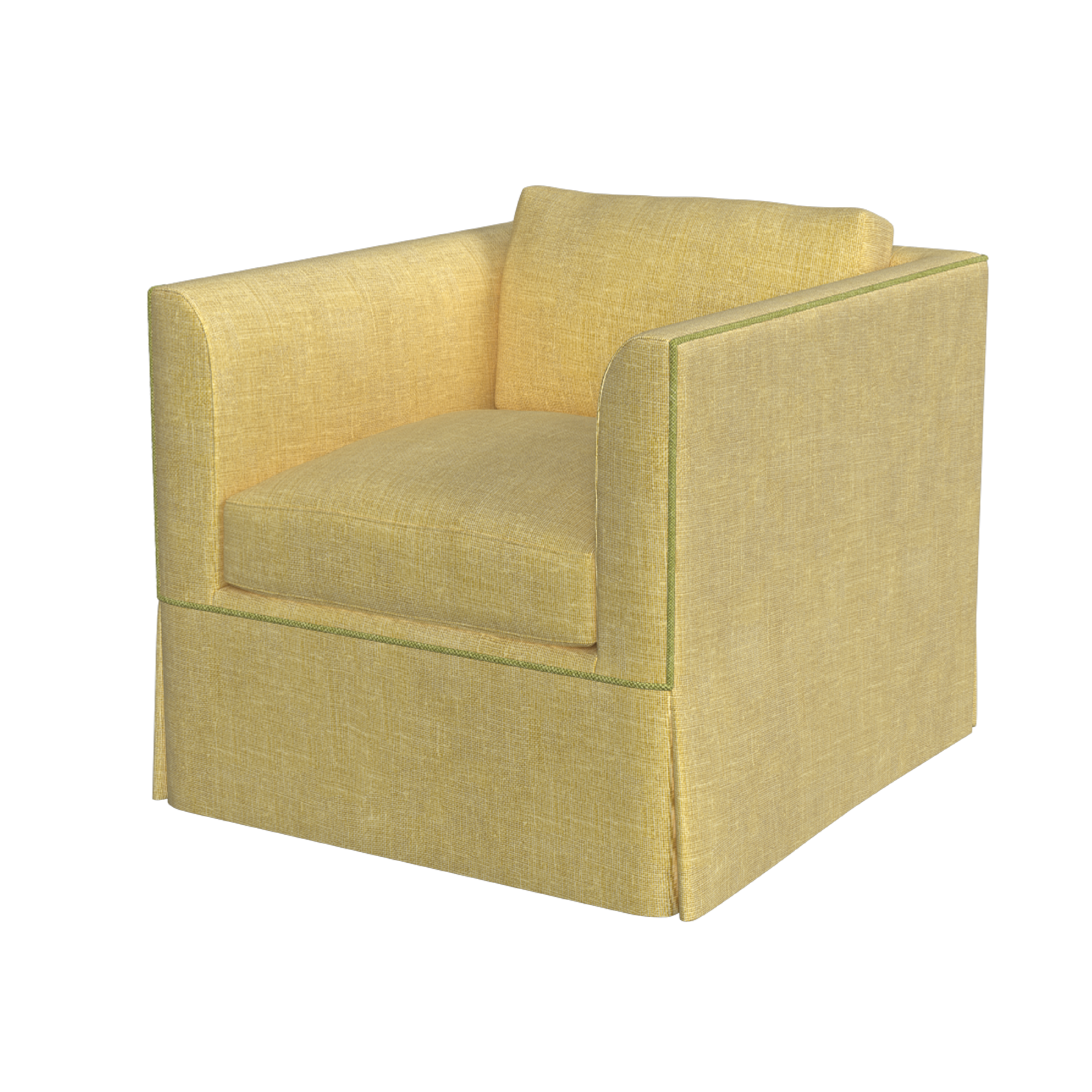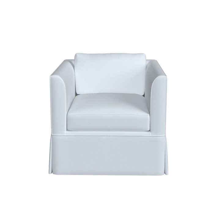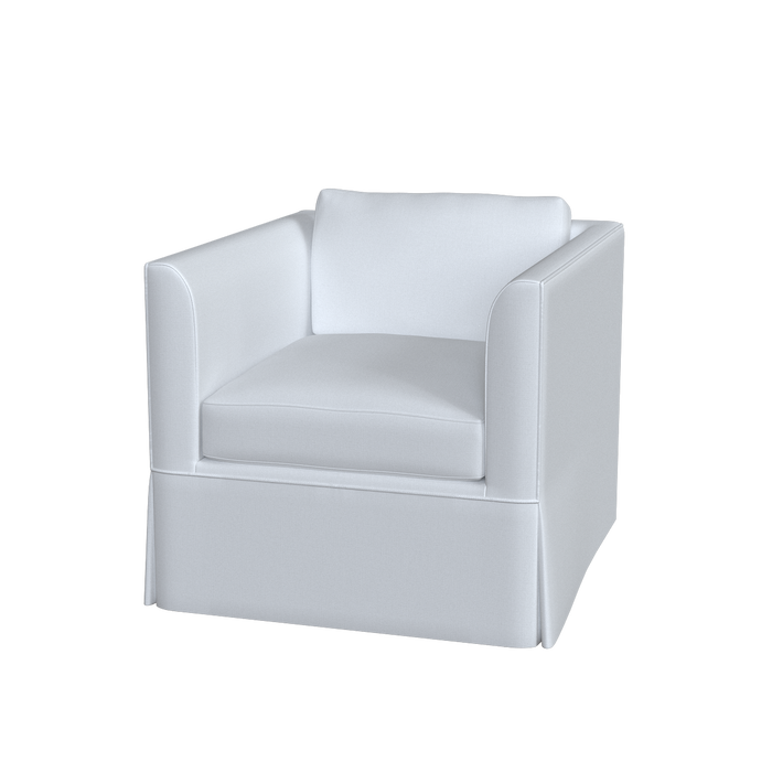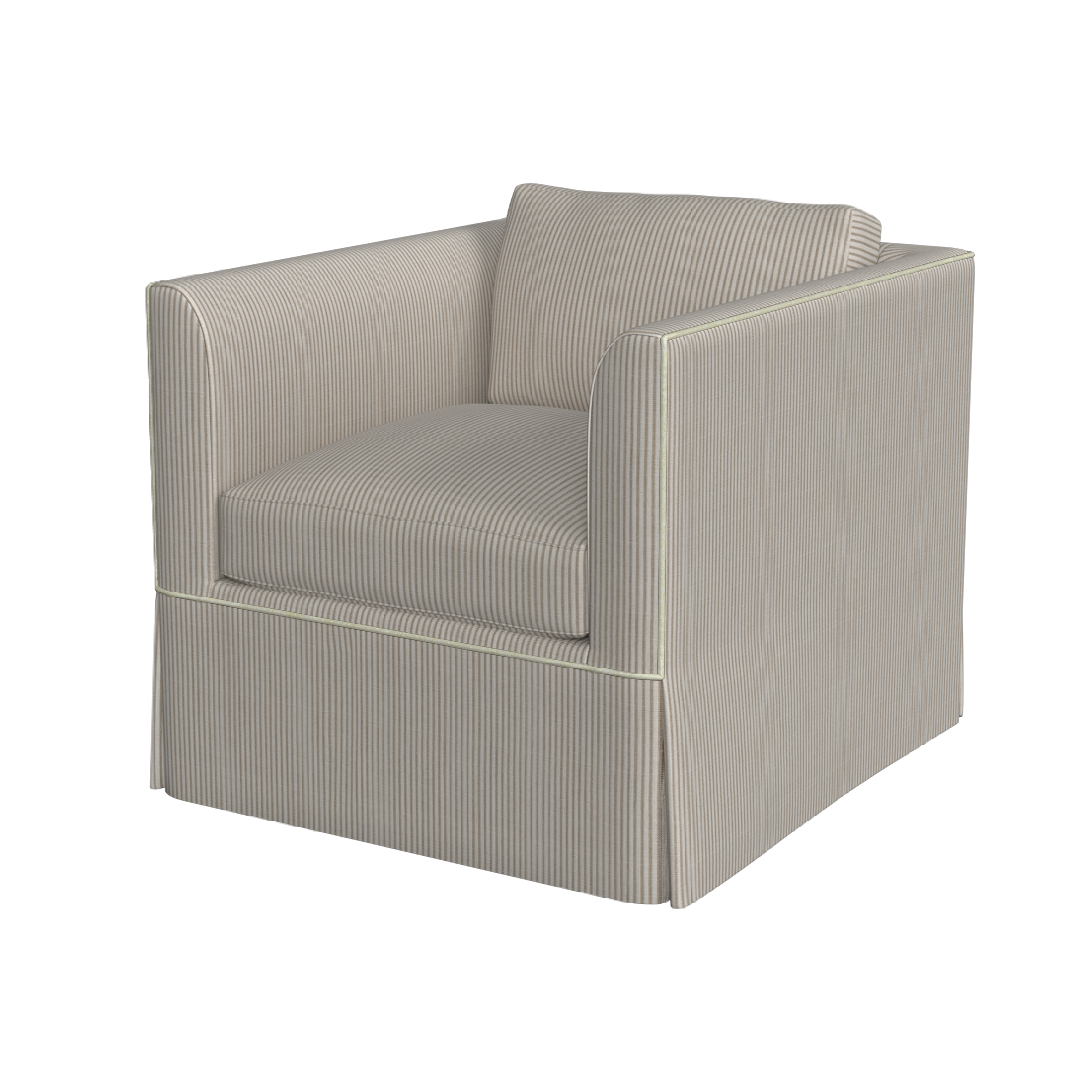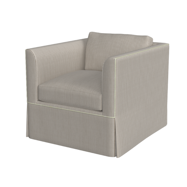 Featuring clean lines and shelter arms with a saber detail, the Dressmaker Bradley Swivel is a staple for the living room or den. Grab a pair for a sophisticated, contemporary look.