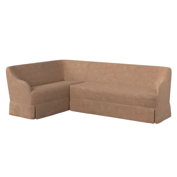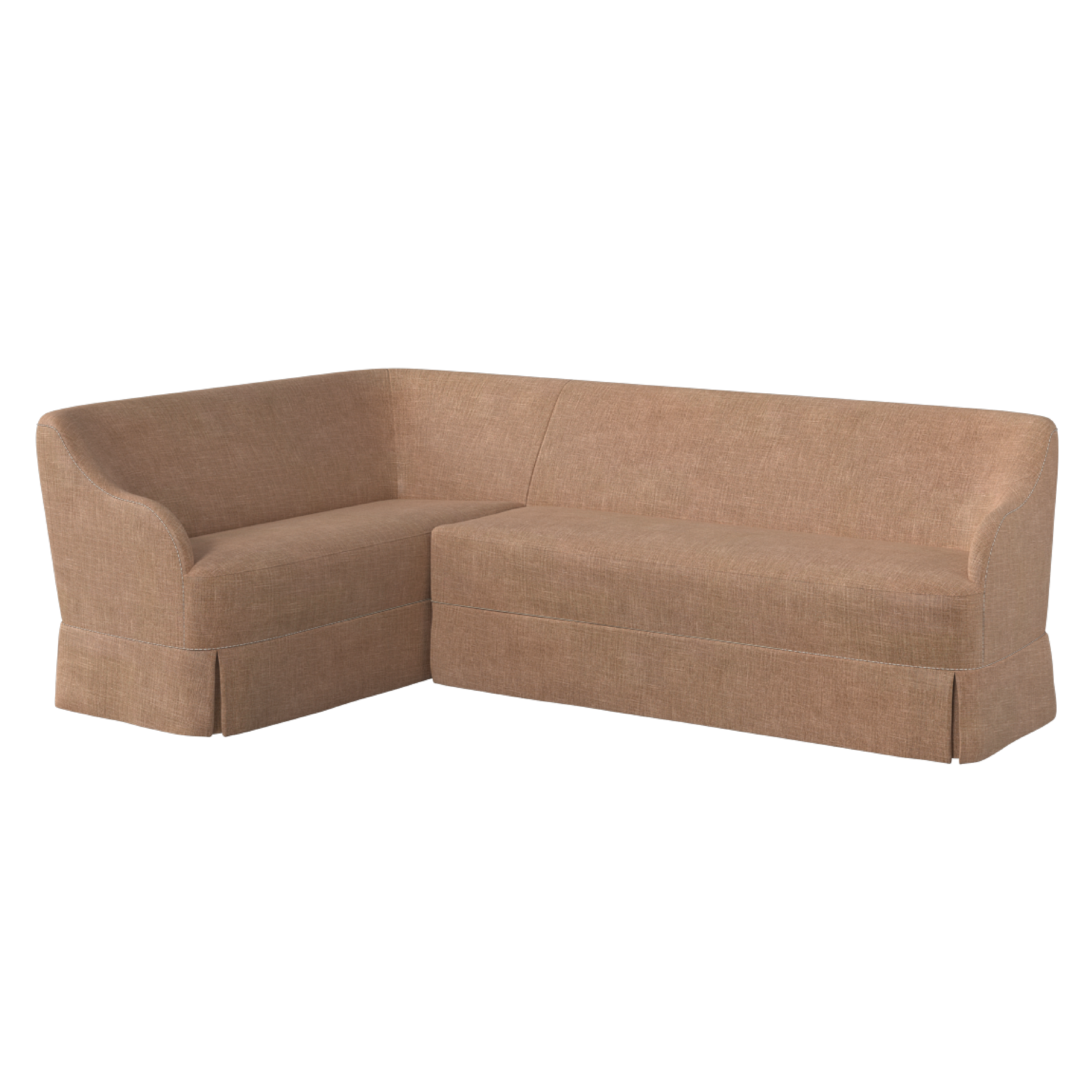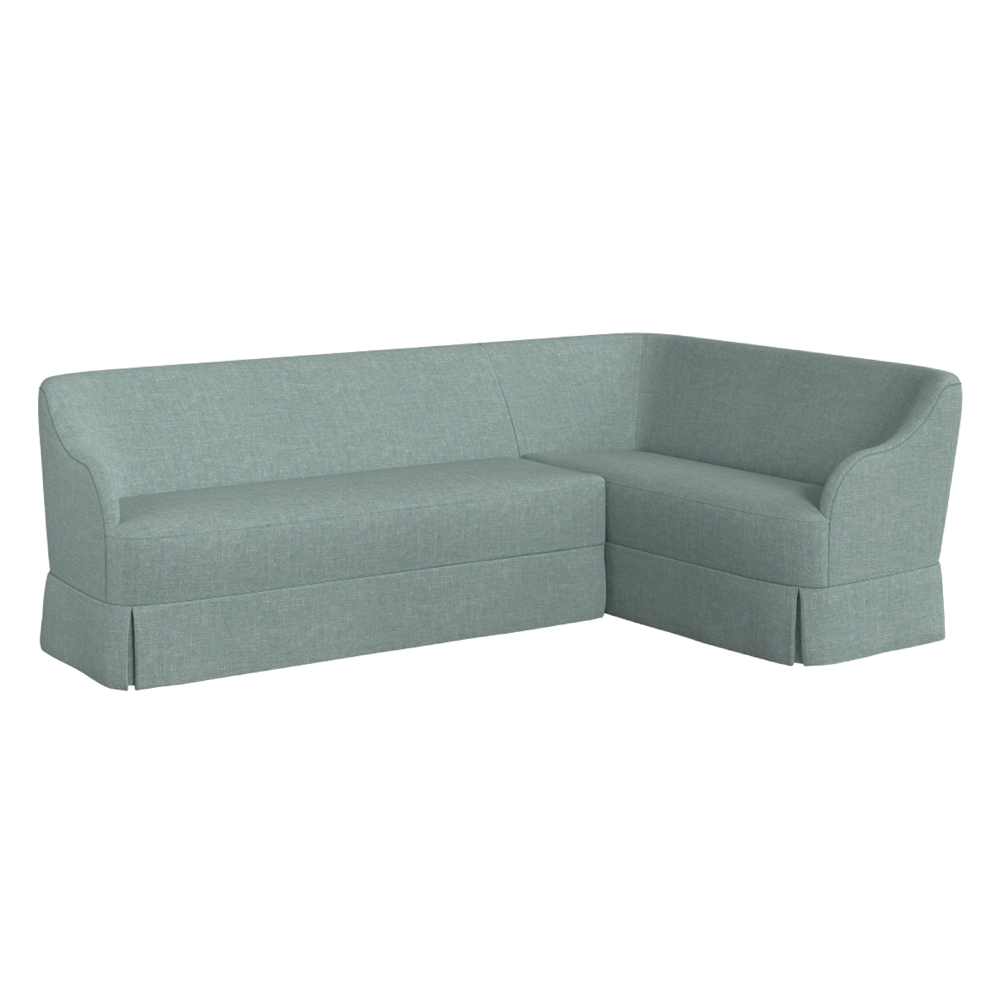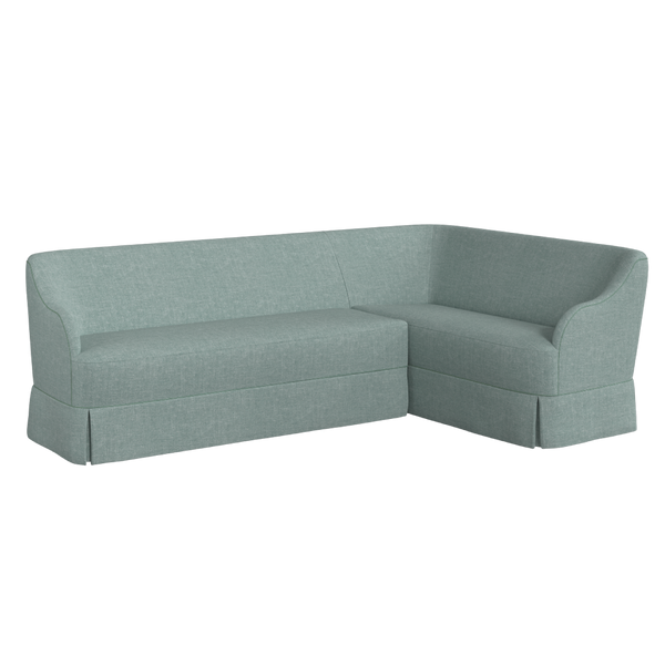 With an elegantly curved silhouette, our Custom Eloise Corner Banquette is customizable by the inch! It’s offered in three configurations and different skirt styles: upholstered, dressmaker, or box pleated. The beautiful details will add designer touches to any dining space.