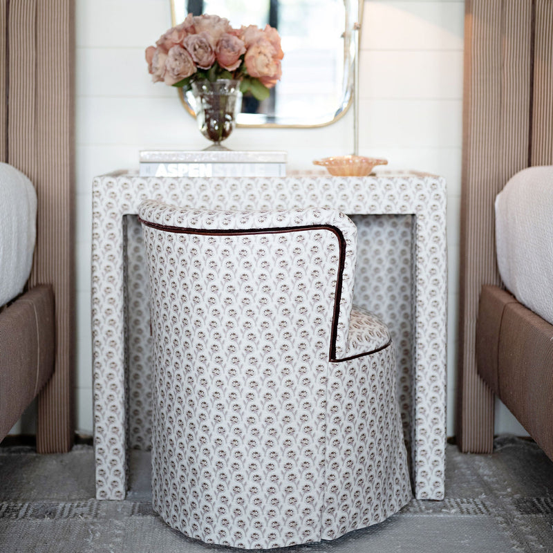 The Dressmaker Teeny Chair is incredibly stylish as a desk or vanity chair and is perfect for maximizing seating in small spaces. The pleated skirt and castors add a unique flair to your home.
