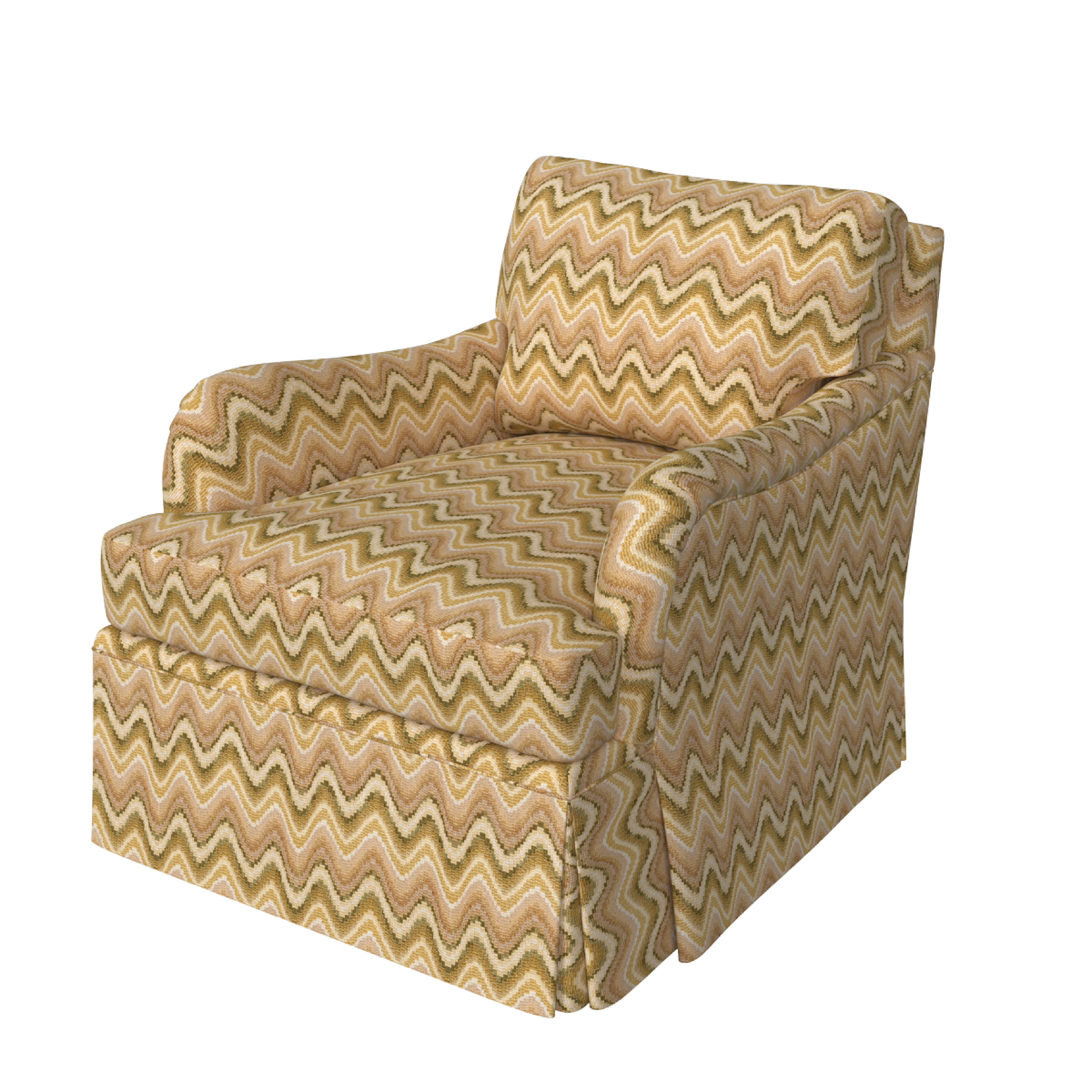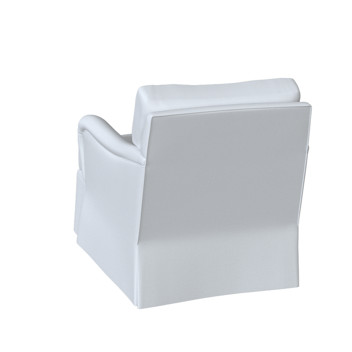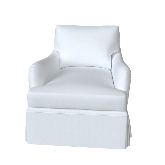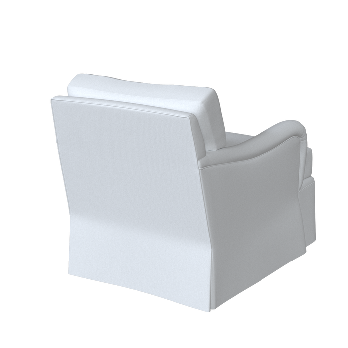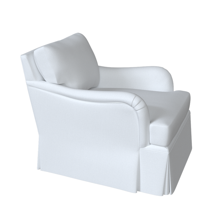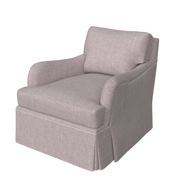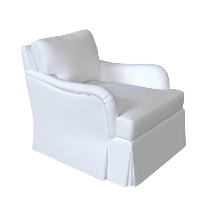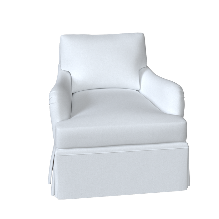The Winston Chair is updated with a dressmaker skirt and swivel base for a more relaxed, tailored look. Its classic English roll arms and timeless club-chair silhouette are complemented by a skirt that falls to the floor, concealing the swivel mechanism.
