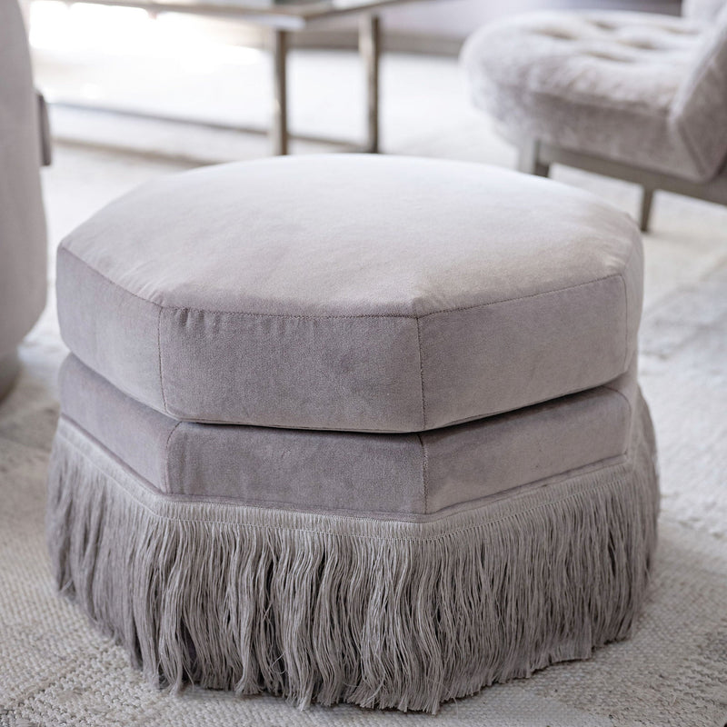 Designed to complement the Ivy Swivel Chair, the Ivy Ottoman features a striking octagonal shape with refined detailing. Its plush cushioning offers both style and comfort, making it the perfect accent piece for lounging.