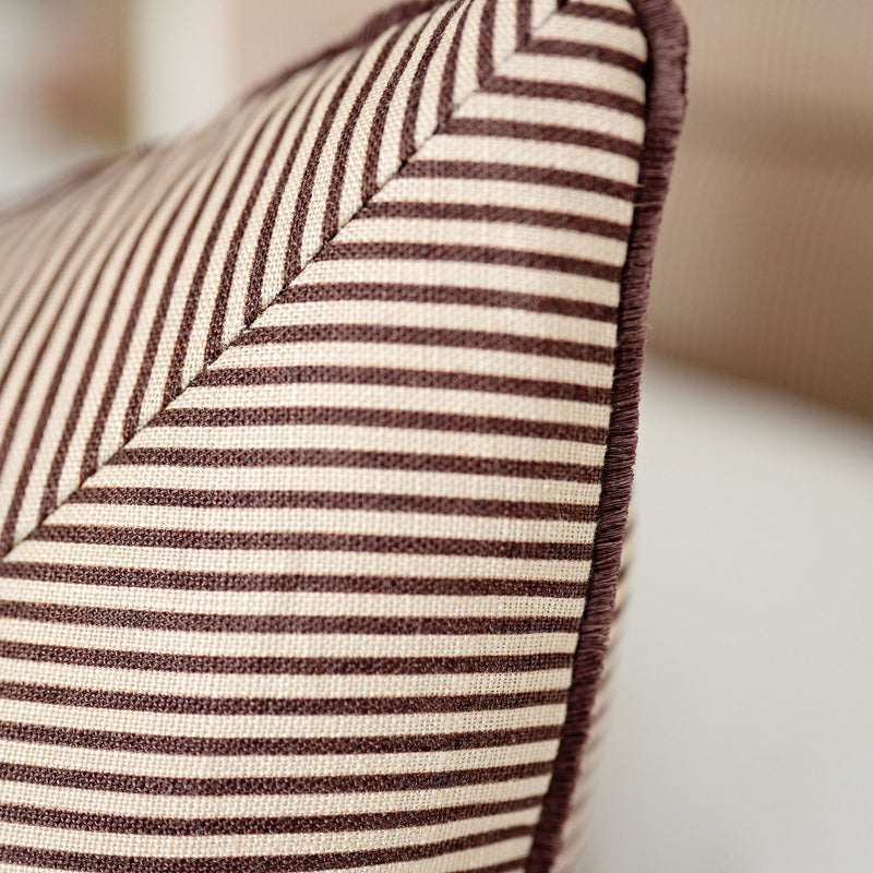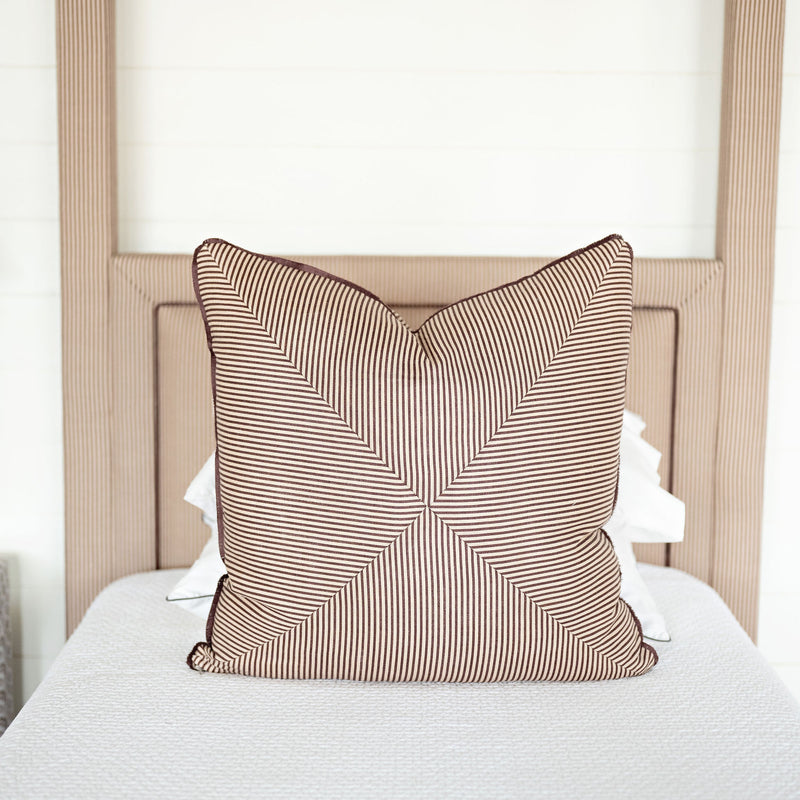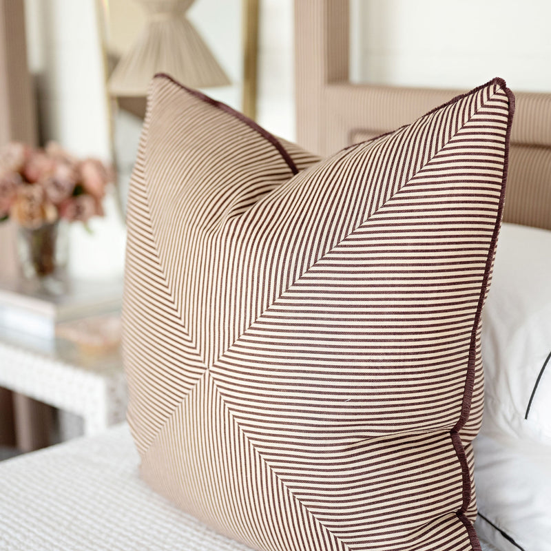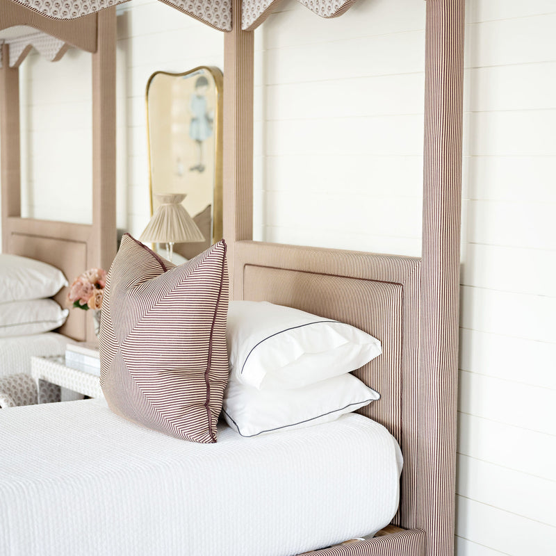 Create a custom mitered pillow to perfectly fit your space! Thoughtfully tailored with a refined mitered edge, this style adds subtle sophistication to any space. Available in select fabrics with option for a contrast welt or eyelash fringe, the design possibilities are endless!