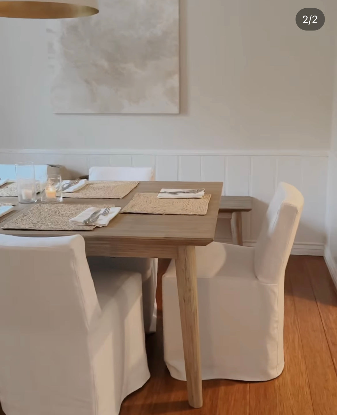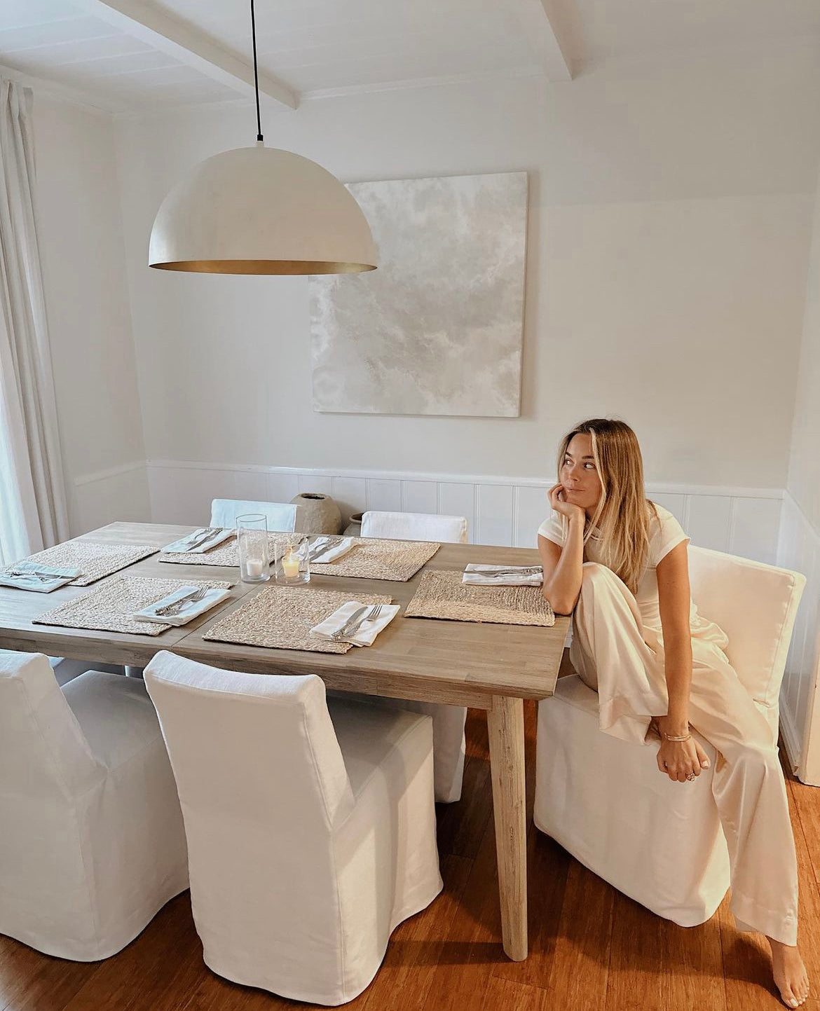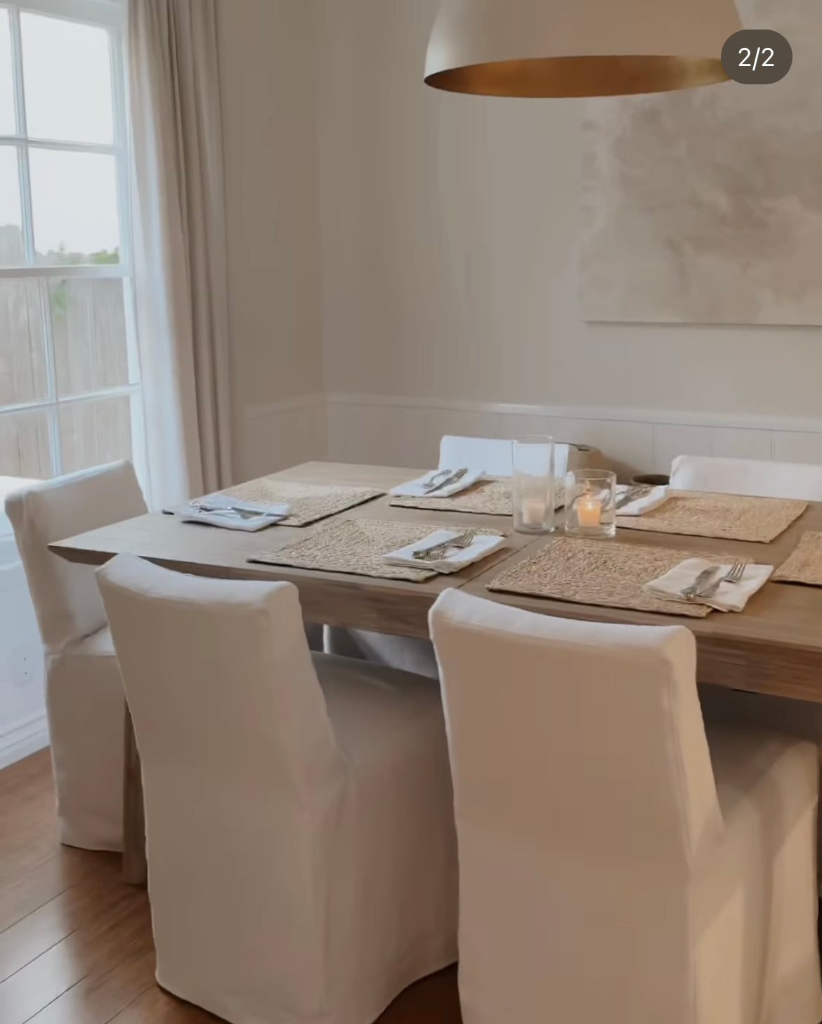 Our dressmaker and slipcovered dining chairs feature castors for easy movement.
