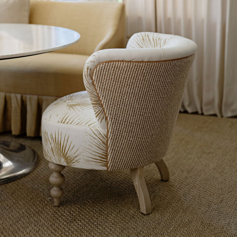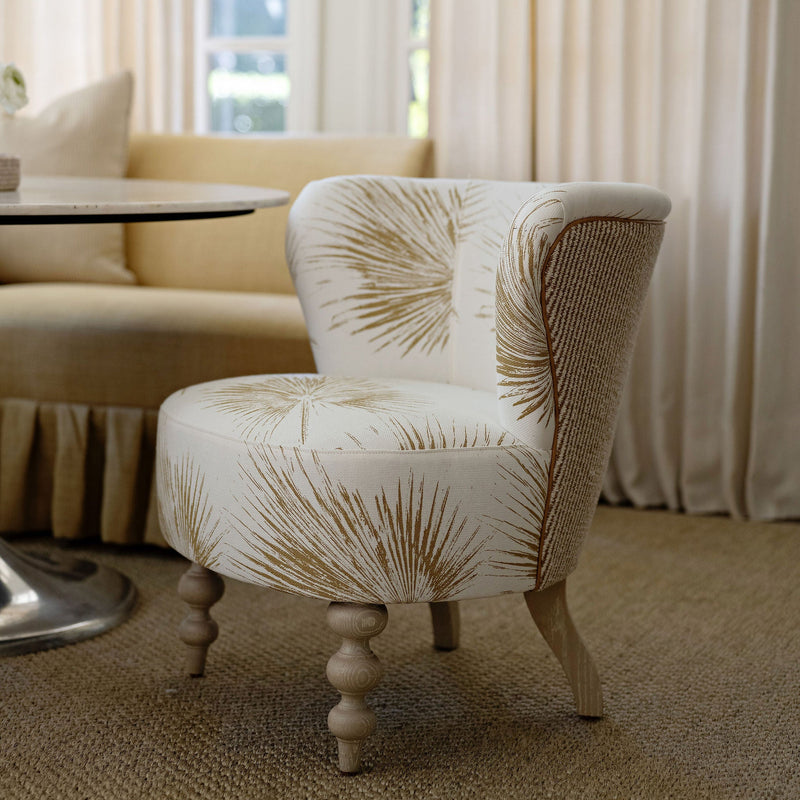The ultimate cocktail lounge chair, the Teddy Chair is sure to be a crowd favorite! With its plush seat, curved back, and spindle legs, this piece adds a whimsical flair to your home.