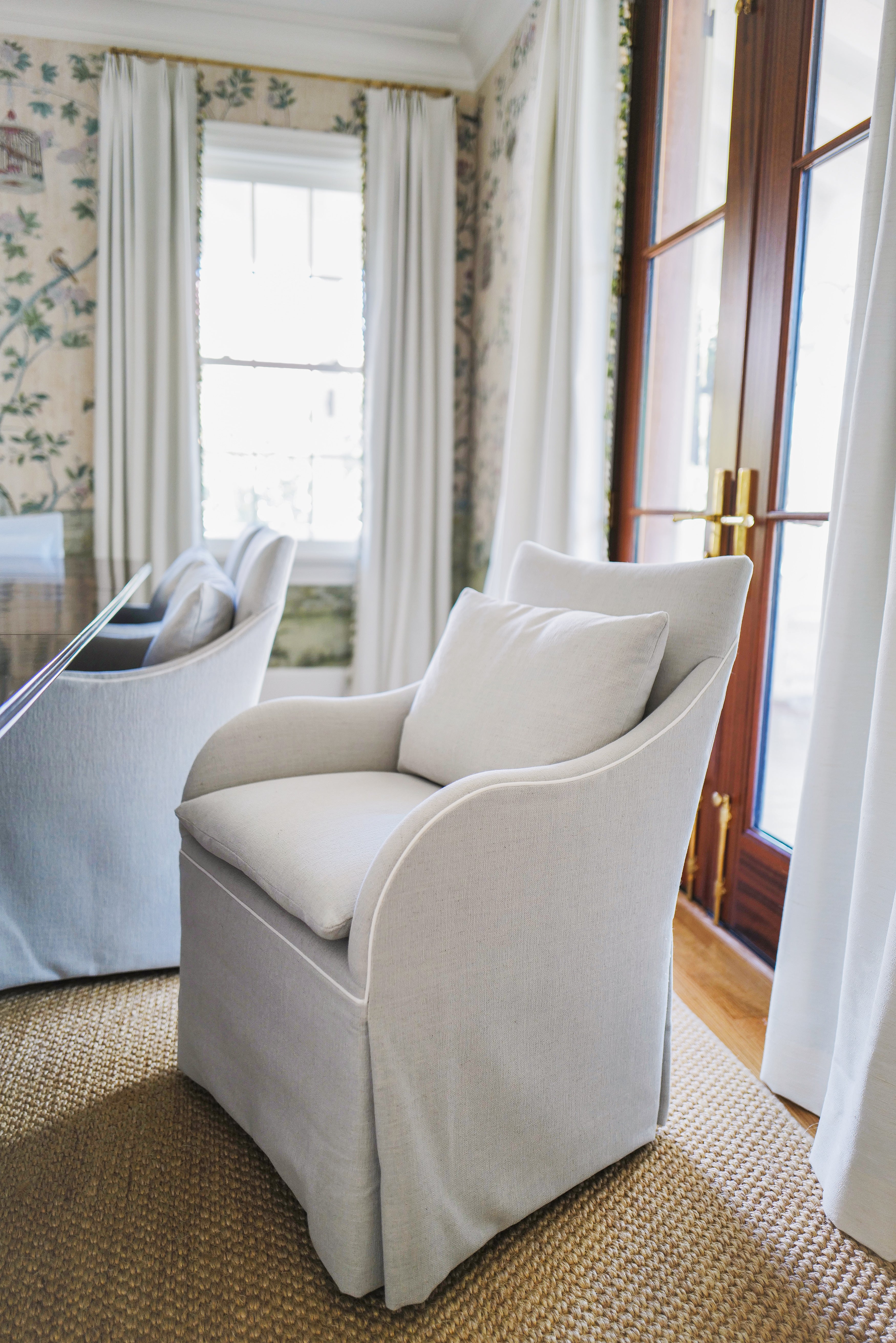 Our dressmaker and slipcovered dining chairs feature castors for easy movement.